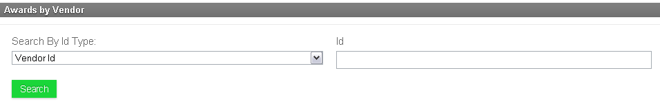 1. Click the Awards By Vendor icon in on the main page. The following page is presented: