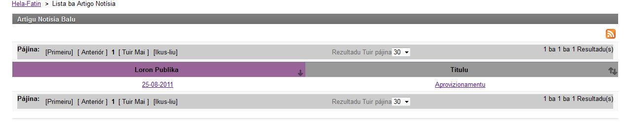 A lista de Artigos Informativos é ordenada por Data de Publicação. Para visualizar um Artigo Informativo, pressione o Título do Artigo.