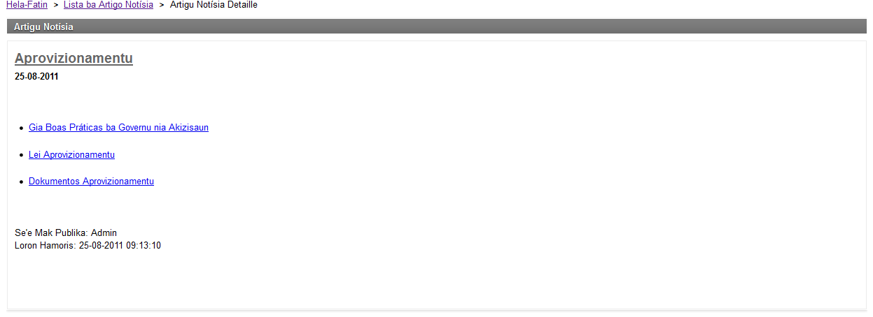 - Data de criação – A data em que a notícia foi posta no Portal Transparência.
