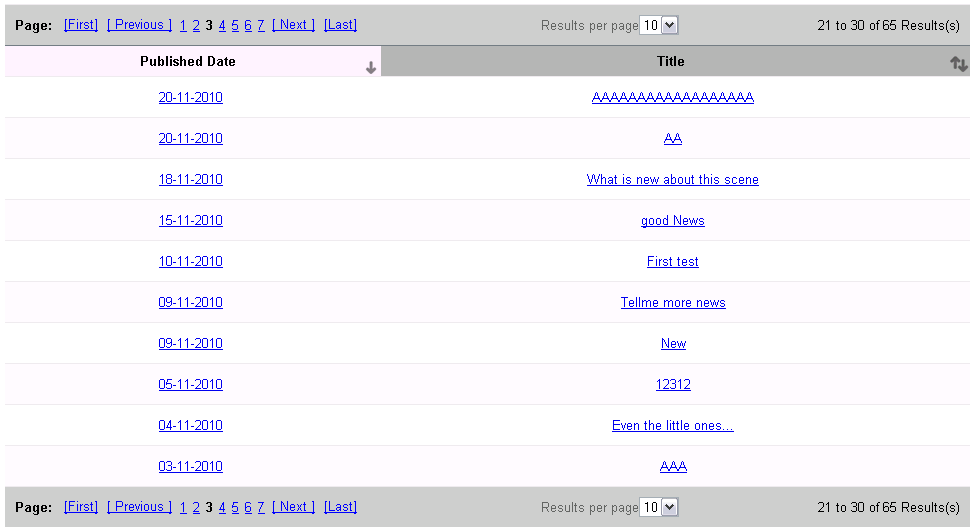 - Última: Redireciona o Utilizador para a última página (ie. a página contendo os artigos mais antigos).