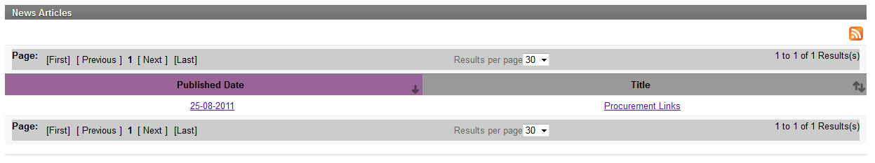 Para mudar o número de Artigos Informativos mostradas na página, selecione um valor do Resultados por Página no menu pendente.