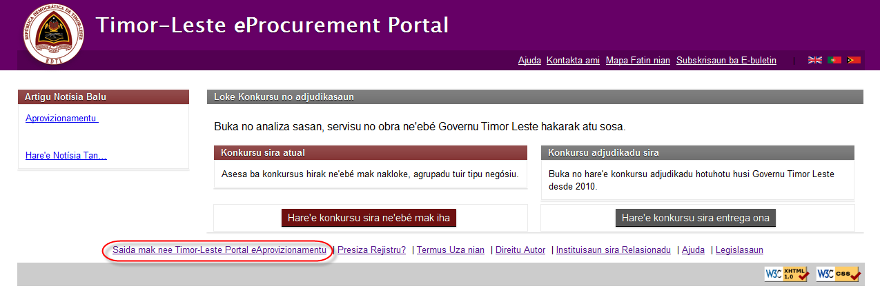 Sobre o Timor-Leste Portal eProcurement contém informações sobre: