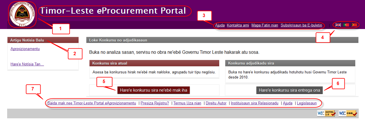 - About Timor-Leste eProcurement Portal: The page describes the role of government transparency and its significance.